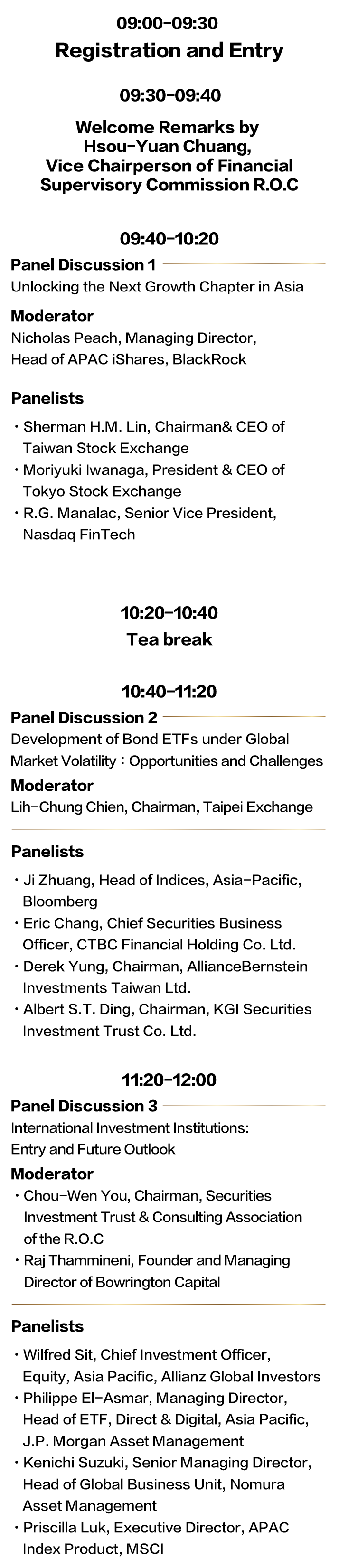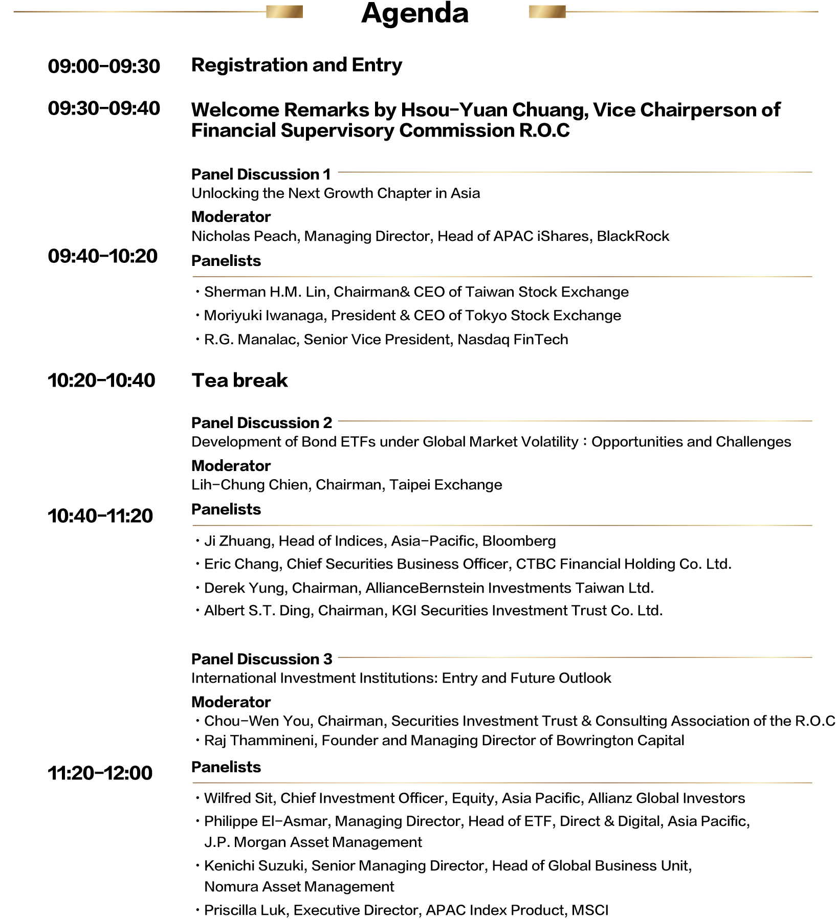 Amid profound global economic shifts and a reshaping trade landscape, Asia’s capital markets are facing unprecedented challenges and opportunities. We cordially invite you to attend the 2025 Taiwan Weeks "Asia Capital Markets Summit Forum", where we will gather insights from across sectors, inspire innovative thinking, share strategic visions, and jointly create a future of mutual success. We look forward to your esteemed presence.